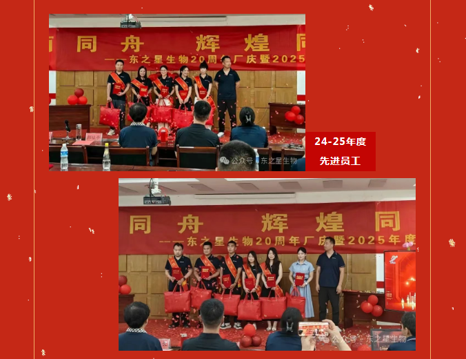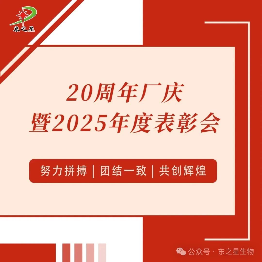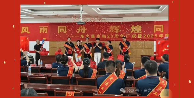 2025年8月8日,河北東之星生物科技股份有限公司20周年廠慶暨2025年度表彰會(huì)圓滿落幕。從回望二十年崢嶸路,到擘畫未來發(fā)展藍(lán)圖,從表彰先進(jìn)榜樣,到共簽?zāi)繕?biāo)承諾,每一個(gè)環(huán)節(jié)都凝聚著東之星人的初心與擔(dān)當(dāng),讓我們一同回顧一下這場(chǎng)盛會(huì)的精彩瞬間。