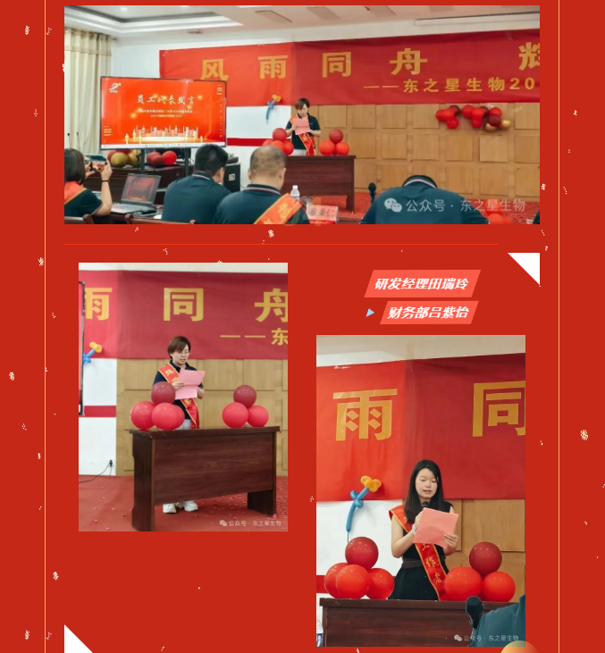 “在東之星的這些年,我見證了公司的成長(zhǎng),也實(shí)現(xiàn)了自我的突破?!毖邪l(fā)部經(jīng)理田瑞玲與財(cái)務(wù)部呂紫怡作為員工代表上臺(tái)發(fā)言,她們分享了在工作中的感悟與收獲,字里行間滿是對(duì)公司的熱愛與對(duì)團(tuán)隊(duì)的感謝。真誠(chéng)的話語(yǔ)道出了所有東之星人的心聲:唯有同心同德、攜手并進(jìn),才能讓公司在前行的道路上走得更穩(wěn)、更遠(yuǎn)。