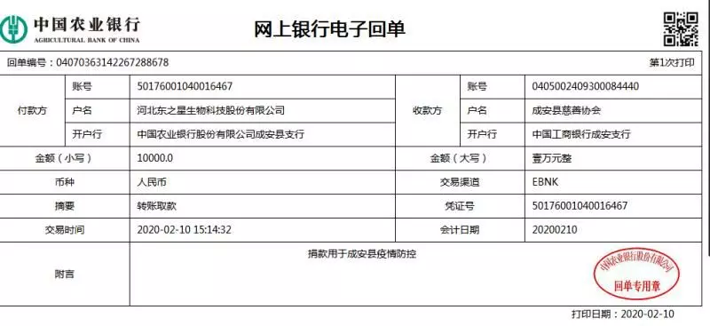 2月10日,東之星集團股份有限公司通過邯鄲紅十字協(xié)會、曲周紅十字協(xié)會、成安縣慈善協(xié)會,向武漢疫情區(qū)捐贈1000套防護服,現(xiàn)金一萬元,共計捐贈價值十萬元物資。